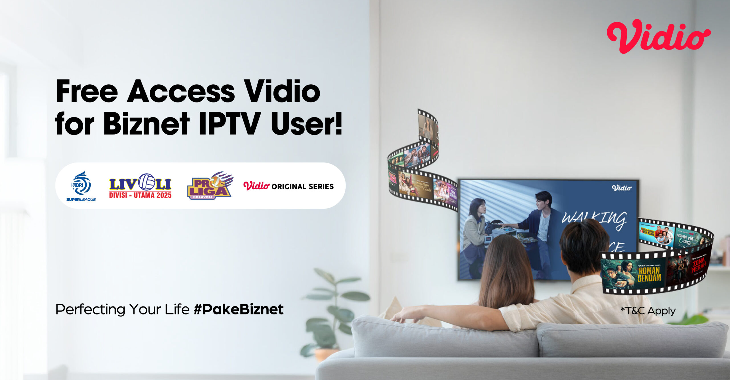 Complete your exciting digital lifestyle, Vidio streaming service is now available on Biznet Home. Subscribe now through the MyBiznet app and enjoy more benefits! Experience smoother streaming and multi-device access that allows you to enjoy your favorite Vidio content from your smartphone, tablet, laptop, and even your smart TV.