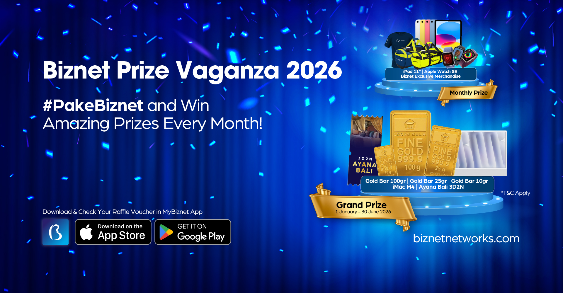 Start your digital journey with #PakeBiznet and win the chance to bring home exclusive prizes from Biznet. Click here to explore more details about Biznet Prize Vaganza 2026.